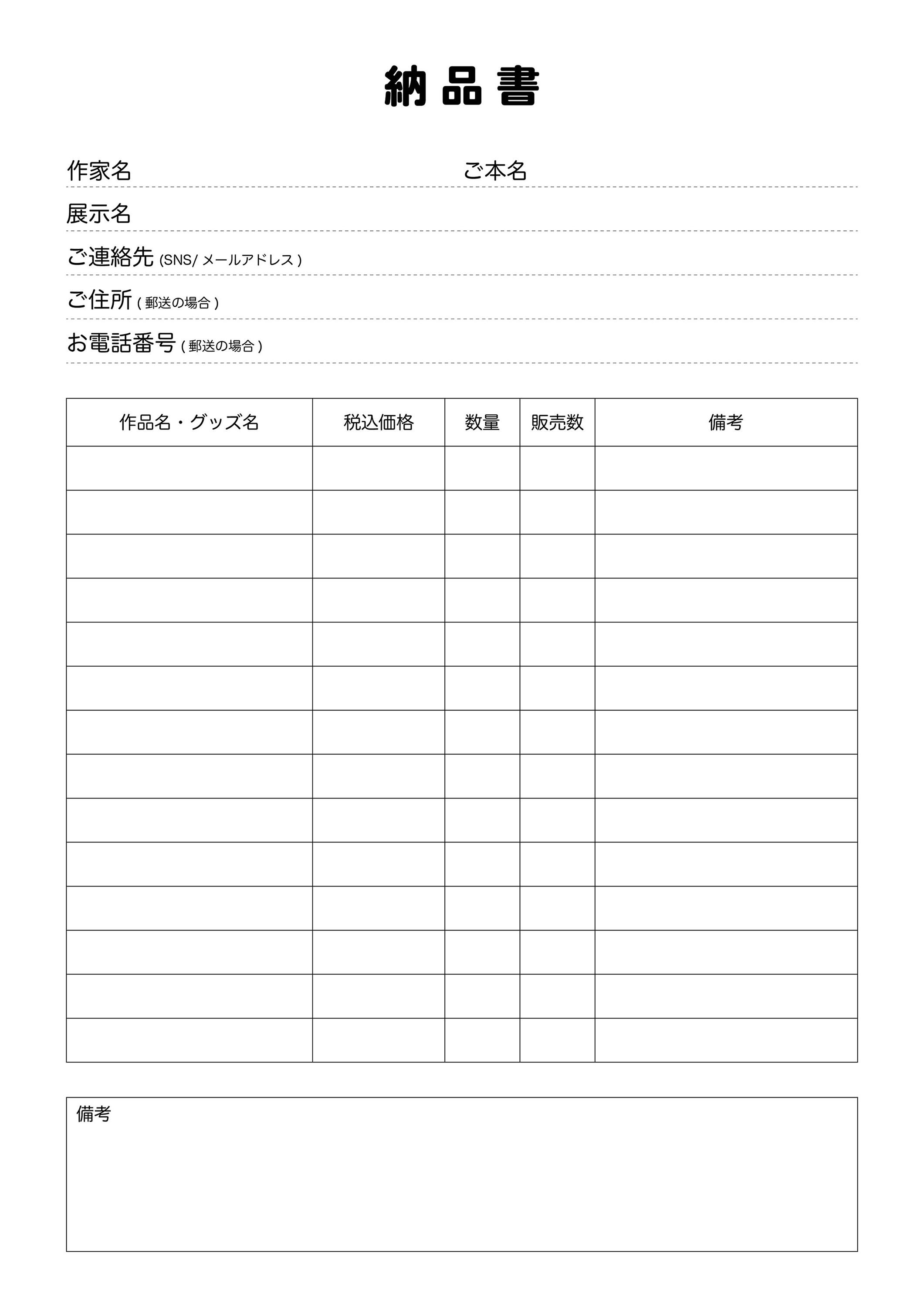 ■ 販売作品の詳細を記入した【納品書】のご準備をお願い致します。