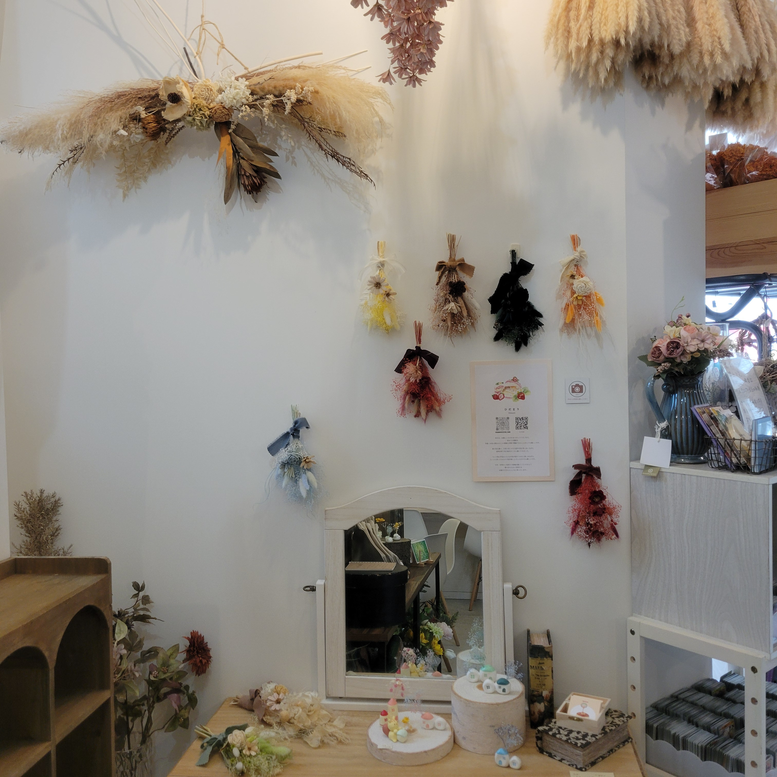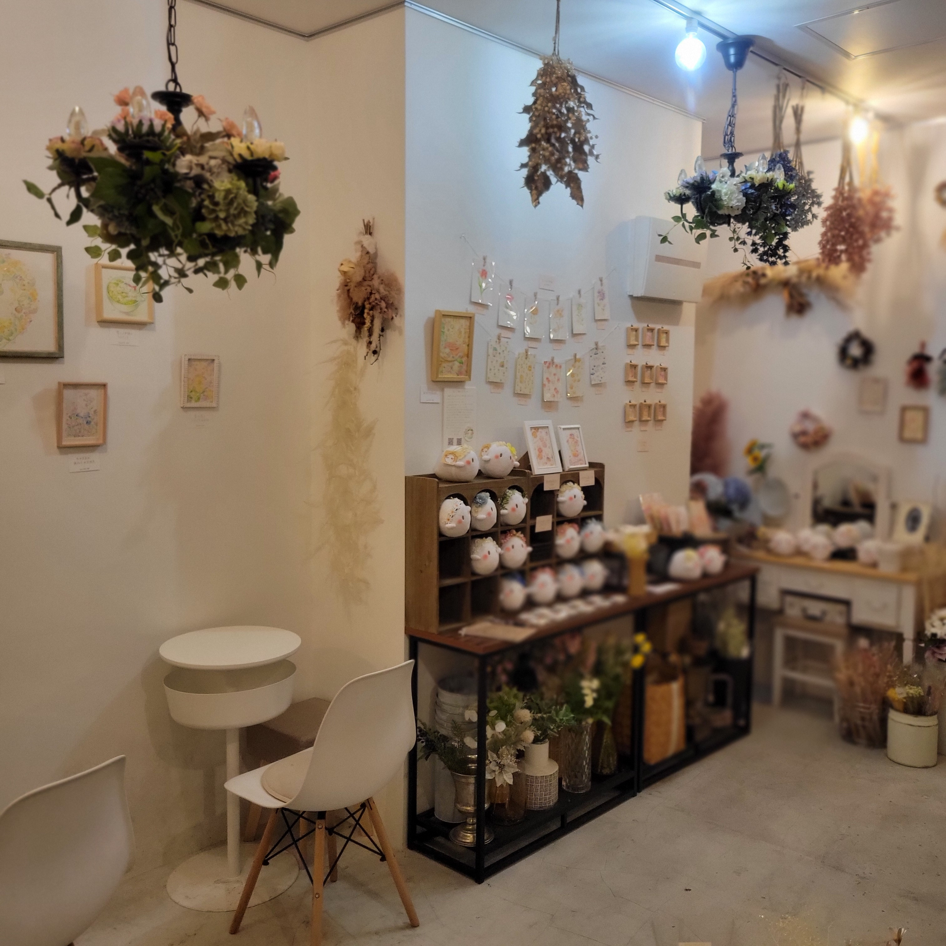 フラワーショップ&カフェならではの華やかな空間で作家様の作品を彩り、ドリンクやスイーツを楽しみながら、ゆったりと作品をご覧いただけま